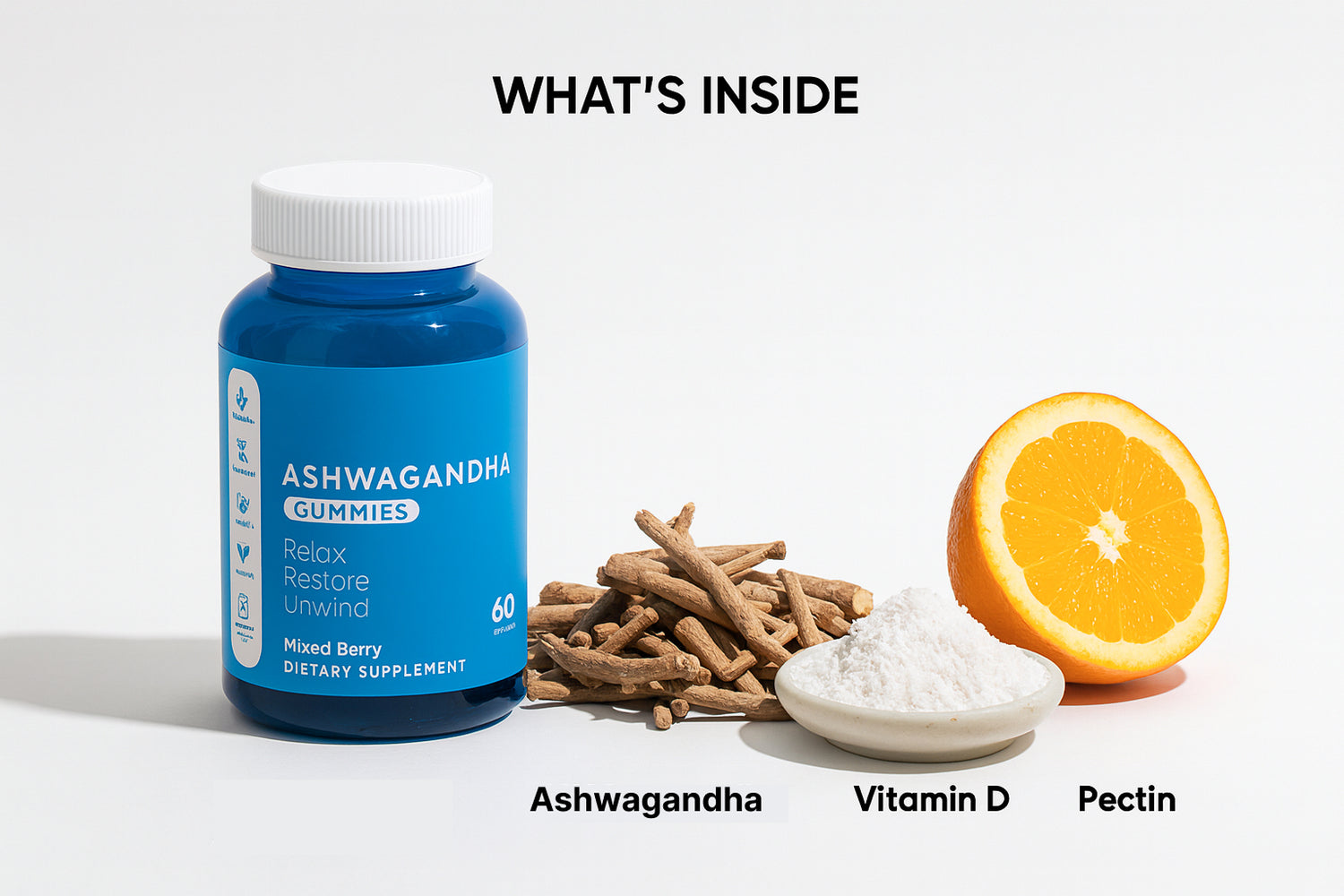 Ashwagandha Gummies are plant-based supplements made with KSM-66 Ashwagandha and Vitamin D to help reduce stress, improve sleep, and support focus and energy—naturally. They’re vegan, gluten-free, and made without gelatin, caffeine, or artificial stimulants.